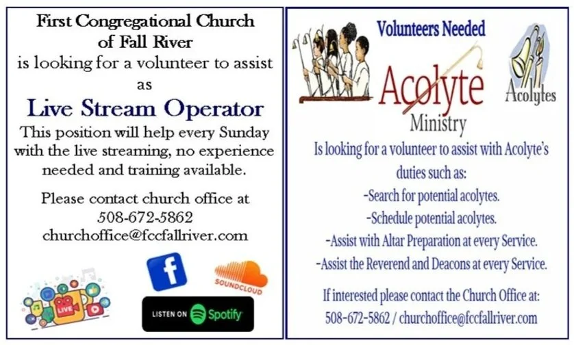 For more information please call (508)672-5862 or email churchoffice@fccfallriver.com or our Facebook page www.facebook.com/Fccfallriver